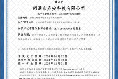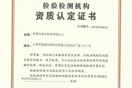 2003年11月10日,昭通市鼎安科技有限公司成立,初始主要從事第三方安全工程技術(shù)服務(wù),經(jīng)多年運(yùn)營,發(fā)展為多專業(yè)綜合科技平臺,為社會提供多種專業(yè)技術(shù)服務(wù)工作。 現(xiàn)公司注冊資金為1200萬元,公司法定代表人:毛衛(wèi)旭。公司主要業(yè)務(wù):安全評價、安全標(biāo)準(zhǔn)化評審、安全工程技術(shù)服務(wù);環(huán)境監(jiān)測、職業(yè)衛(wèi)生檢測、檢驗;法律訴訟及非訴訟服務(wù);司法鑒定、固定資產(chǎn)投資項目節(jié)能服務(wù);工程咨詢;工程測量測繪;安全教育培訓(xùn)等。是安全生產(chǎn)服務(wù)、安全教育培訓(xùn)機(jī)構(gòu),也是環(huán)境監(jiān)測和職業(yè)衛(wèi)生服務(wù)機(jī)構(gòu),同時也是綜合的檢測檢驗、綜合科技平臺服務(wù)機(jī)構(gòu)。多年來為公、檢、法、司、軍、警、海關(guān)、仲裁、安監(jiān)、工礦商貿(mào)企業(yè)、社會團(tuán)體及個人提供多專業(yè)技術(shù)服務(wù)。